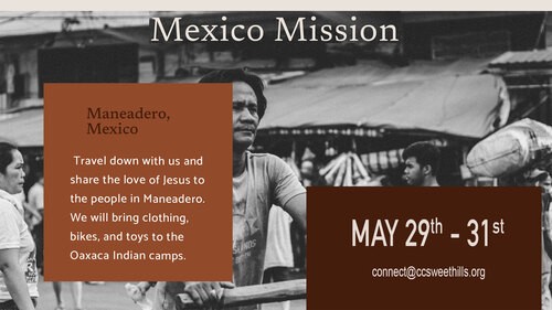 See Pastor Jacob for more information or email us at connect@ccsweethills.org